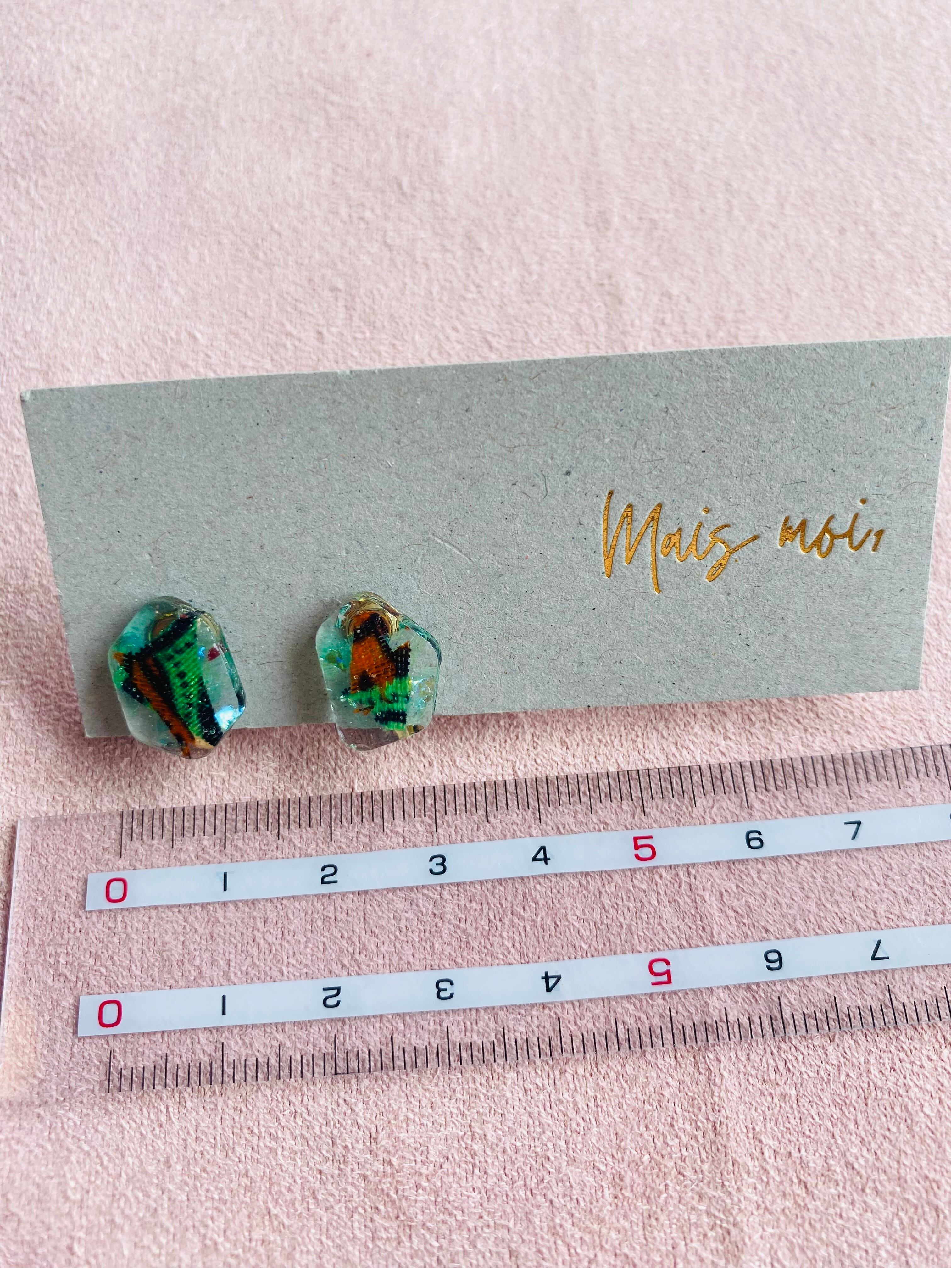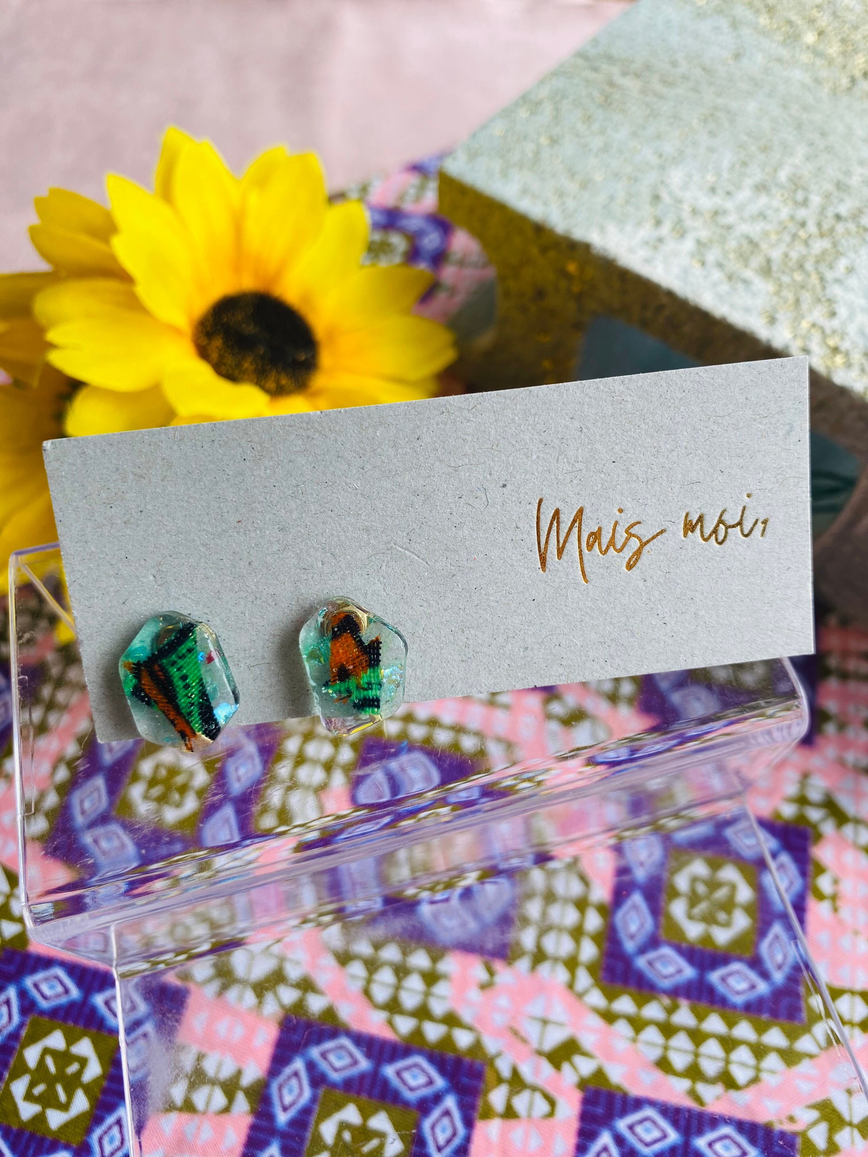 とても細かいアフリカ布とラメをレジンで閉じ込めた